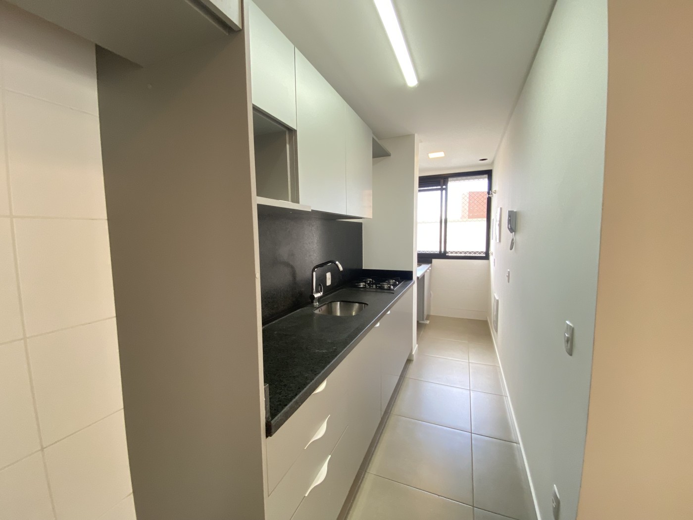 Cozinha e área de serviço com móveis planejados