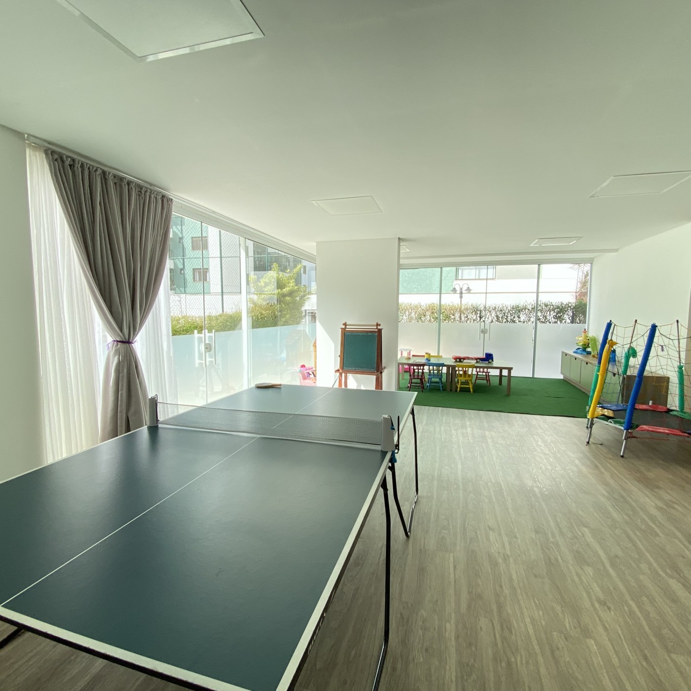 Condomínio oferece: Piscina adulto e infantil, quadra poliesportiva, academia, 2 salões de festa, quiosque com churrasqueira anexo à piscina, sala de cinema, sala de jogos, brinquedoteca, playground, bicicletário e ampla área verde.